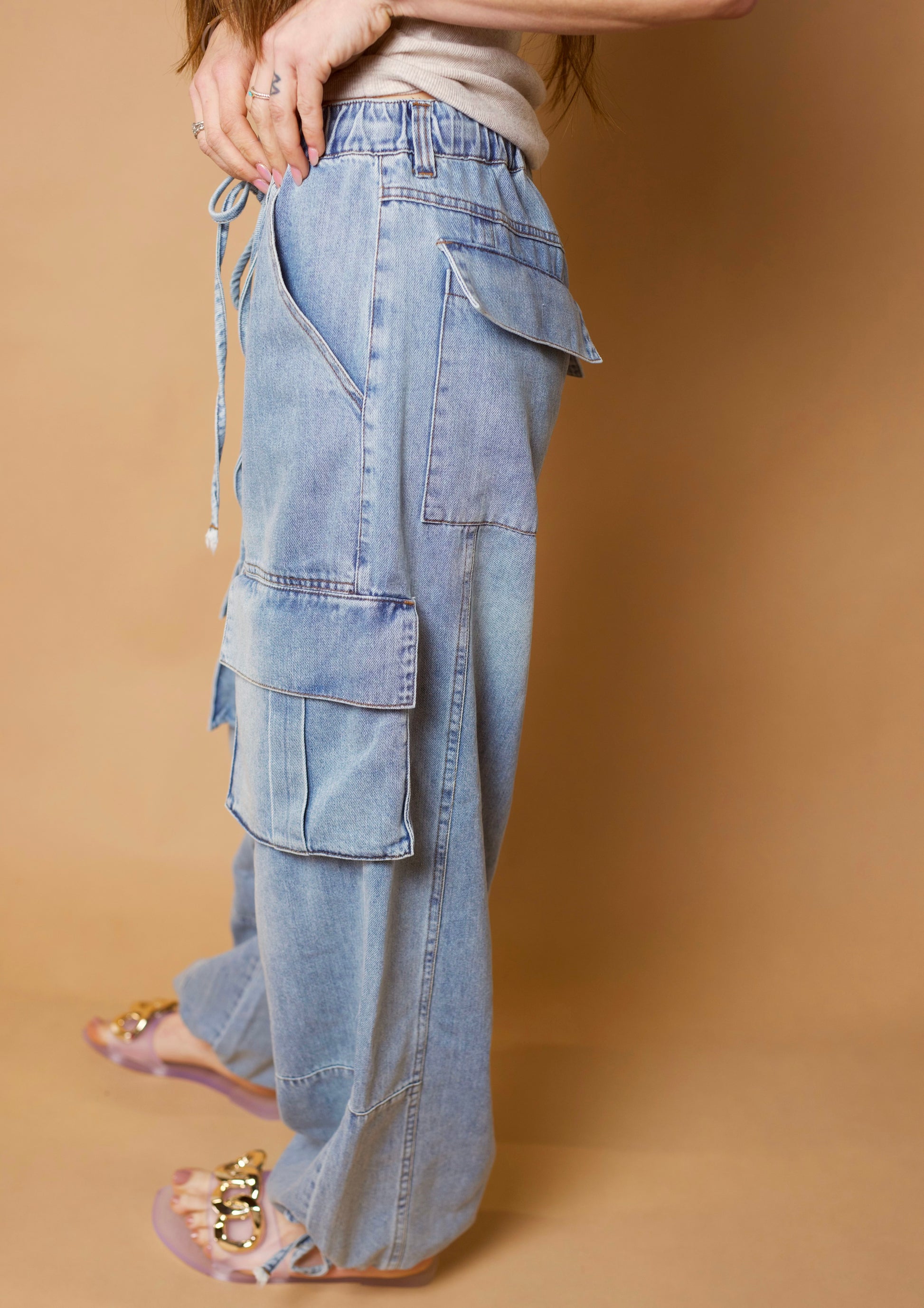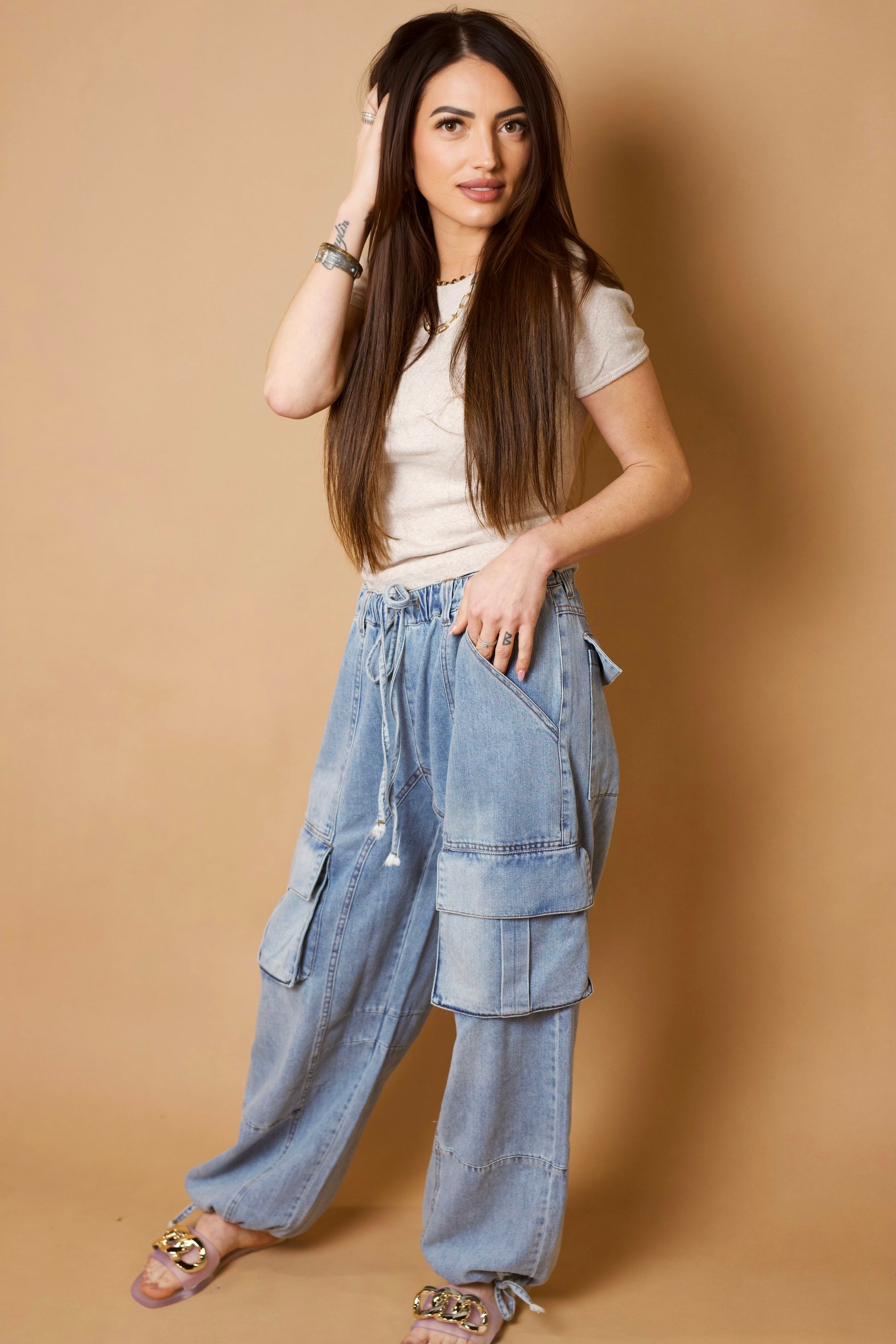 Expertly crafted, the Amos Cargos offer both style and practicality. These mid rise wide leg jeans feature an adjustable waist band for a comfortable fit and adjustable bottom hem for a customizable look. Perfect for any occasion, these cargo jeans provide both fashion and functionality.