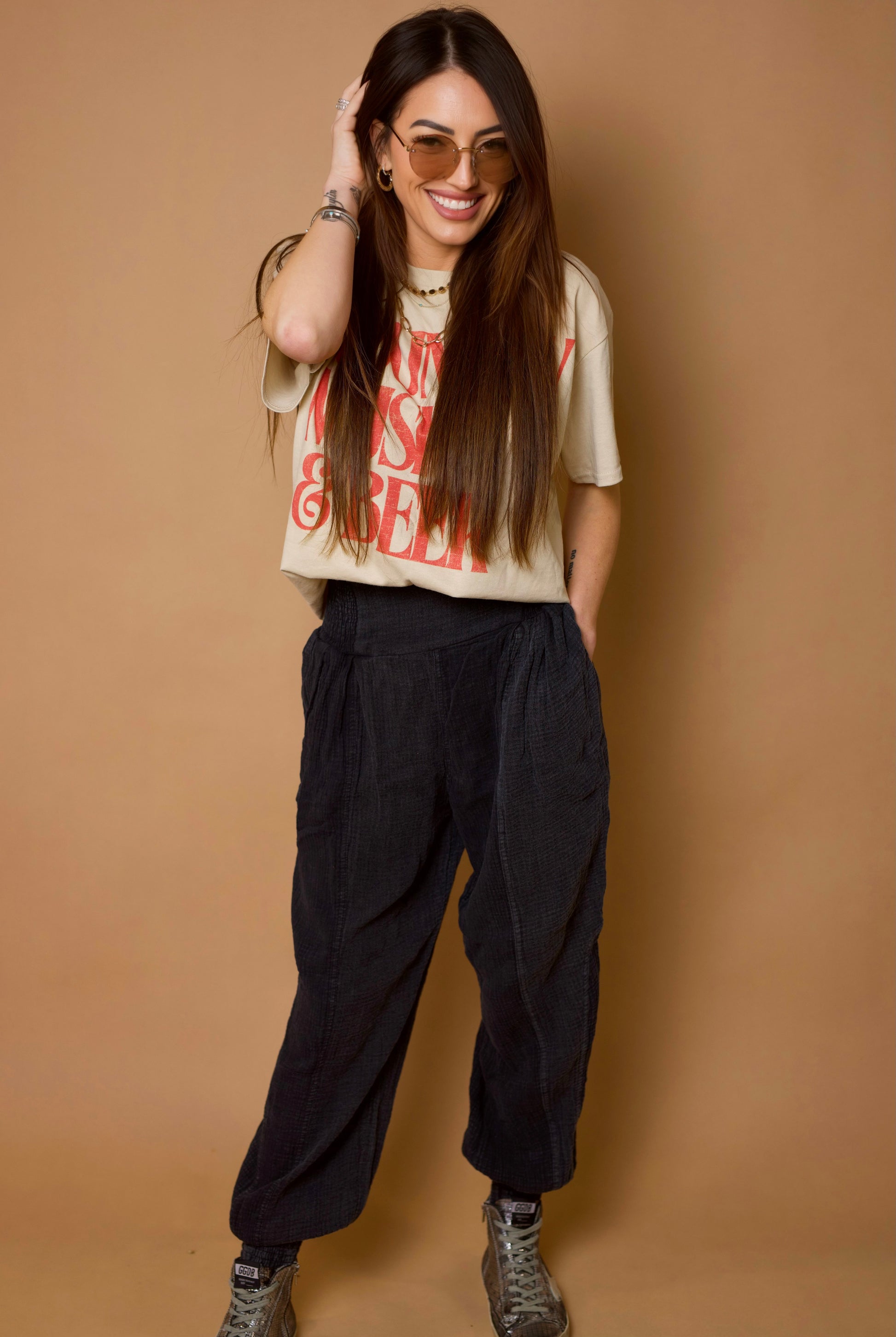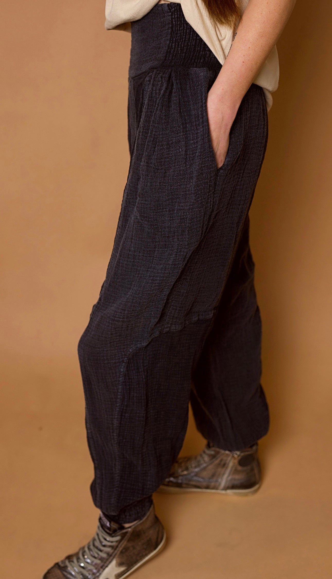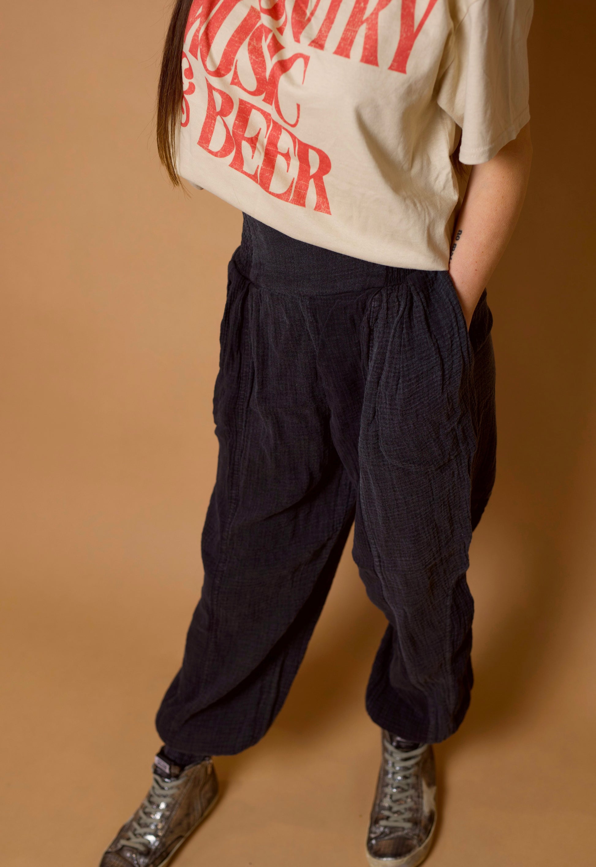 Expertly crafted with a wide waist band and cinched hem, the Boho Pant offers both style and comfort. Its boho design adds an element of fun while the wide waist band provides a secure and flattering fit. Perfect for any fashion-lover seeking a unique addition to their wardrobe.