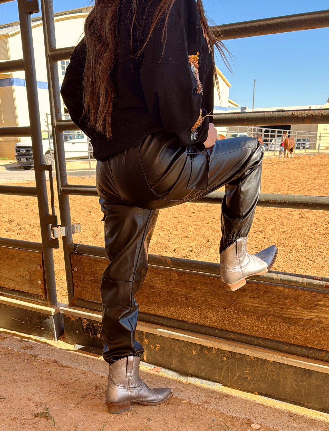 The Bella Pant is the perfect choice for the modern wardrobe. It features an elastic waist for comfort, as well as a unique color combination of black leather and jogger style. With a luxury look and feel, you can enjoy premium quality for any occasion.
