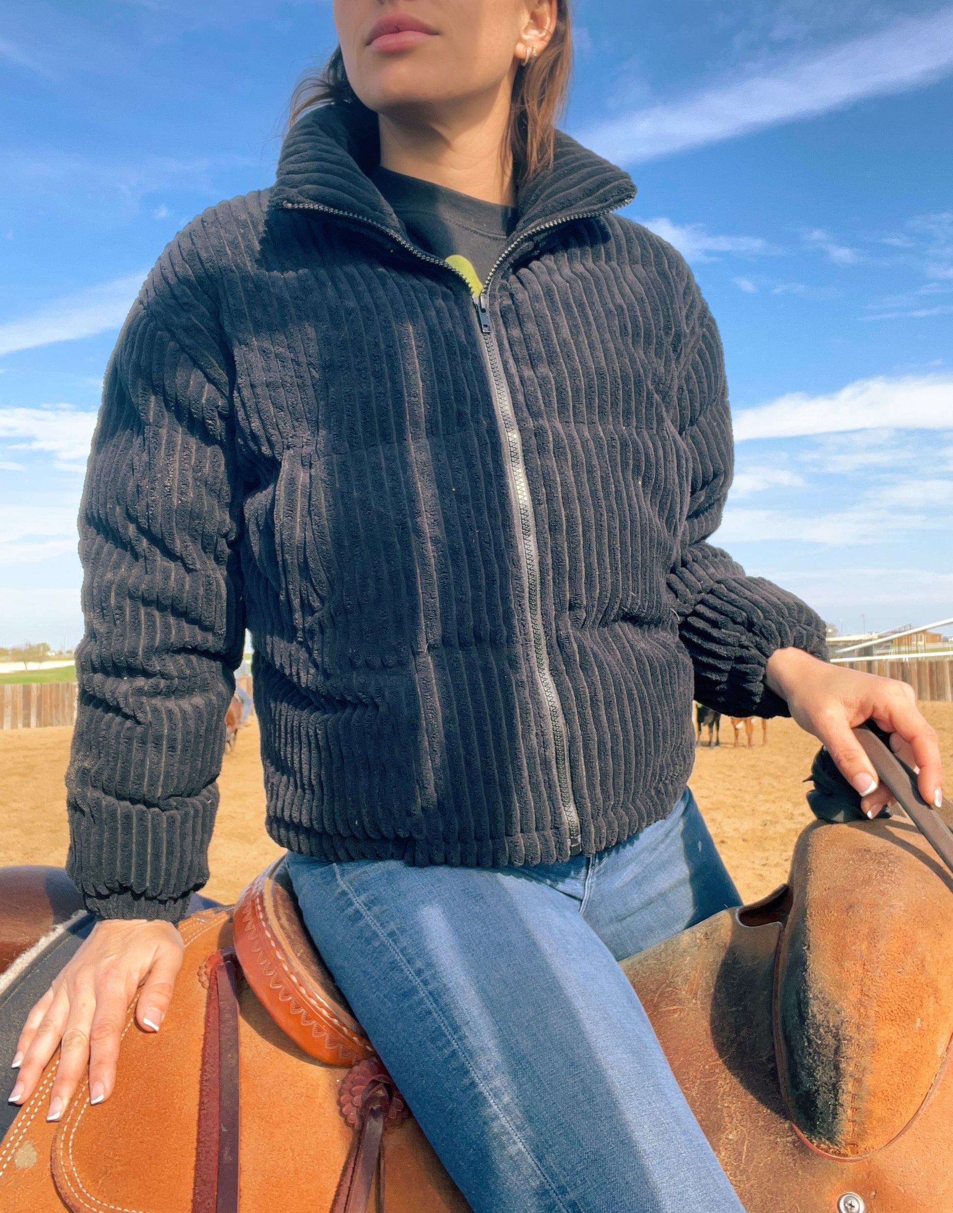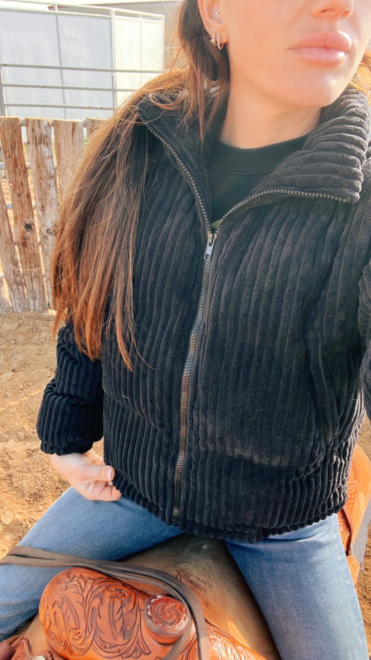 Stay comfortable and stylish in The Chesney jacket. Crafted with a soft black puffer and contemporary corduroy, this jacket provides a fashionable look without sacrificing warmth. The perfect choice for cold winter days.