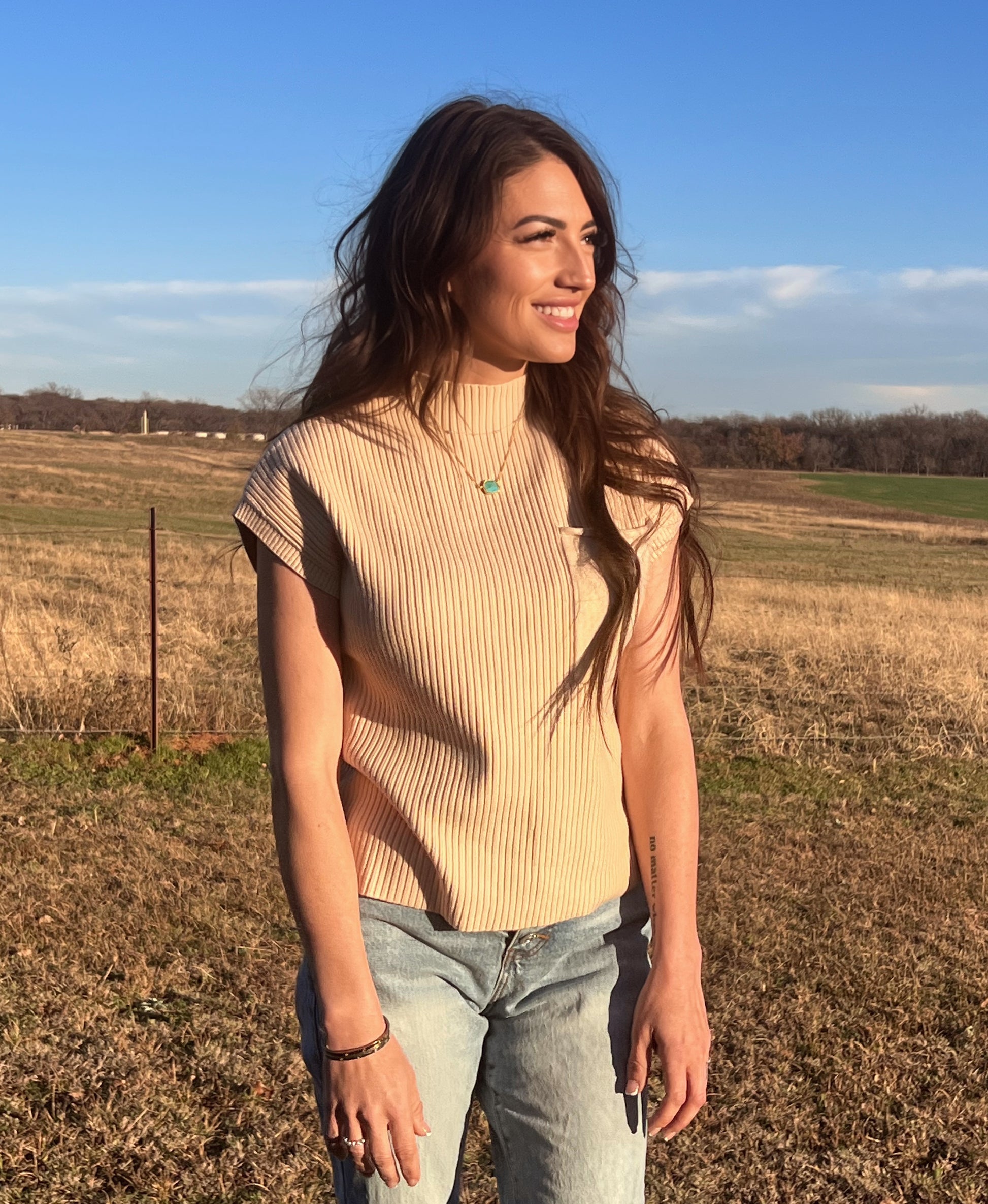 This short sleeve sweater is designed with an easy-to-style, oatmeal-coloured fabric and a patch pocket. The rub knit fabric offers a comfortable fit and a timeless look that will stay in style for years to come.