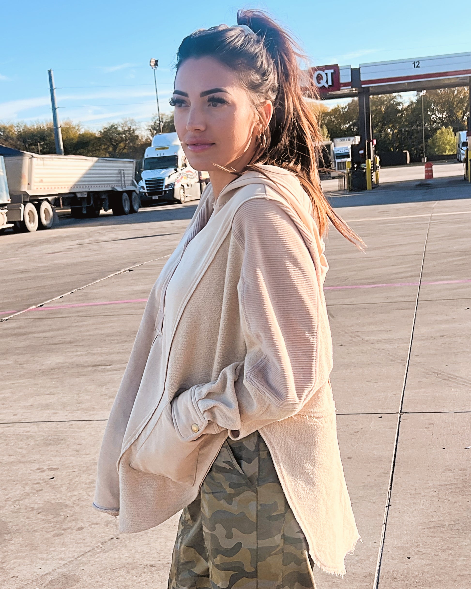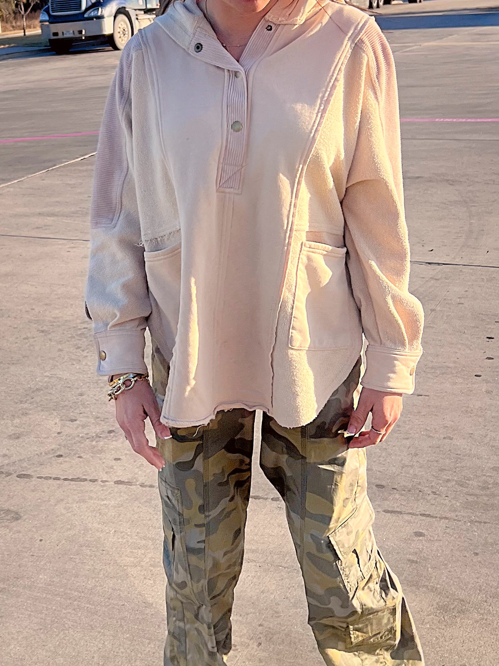 The Dove Pullover Hoodie is a must-have for any wardrobe. It features an oversized silhouette with a slit up the side and hood, all in a warm oat-hued hue. Perfect for layering and cooler days, this piece is sure to keep you comfortable.