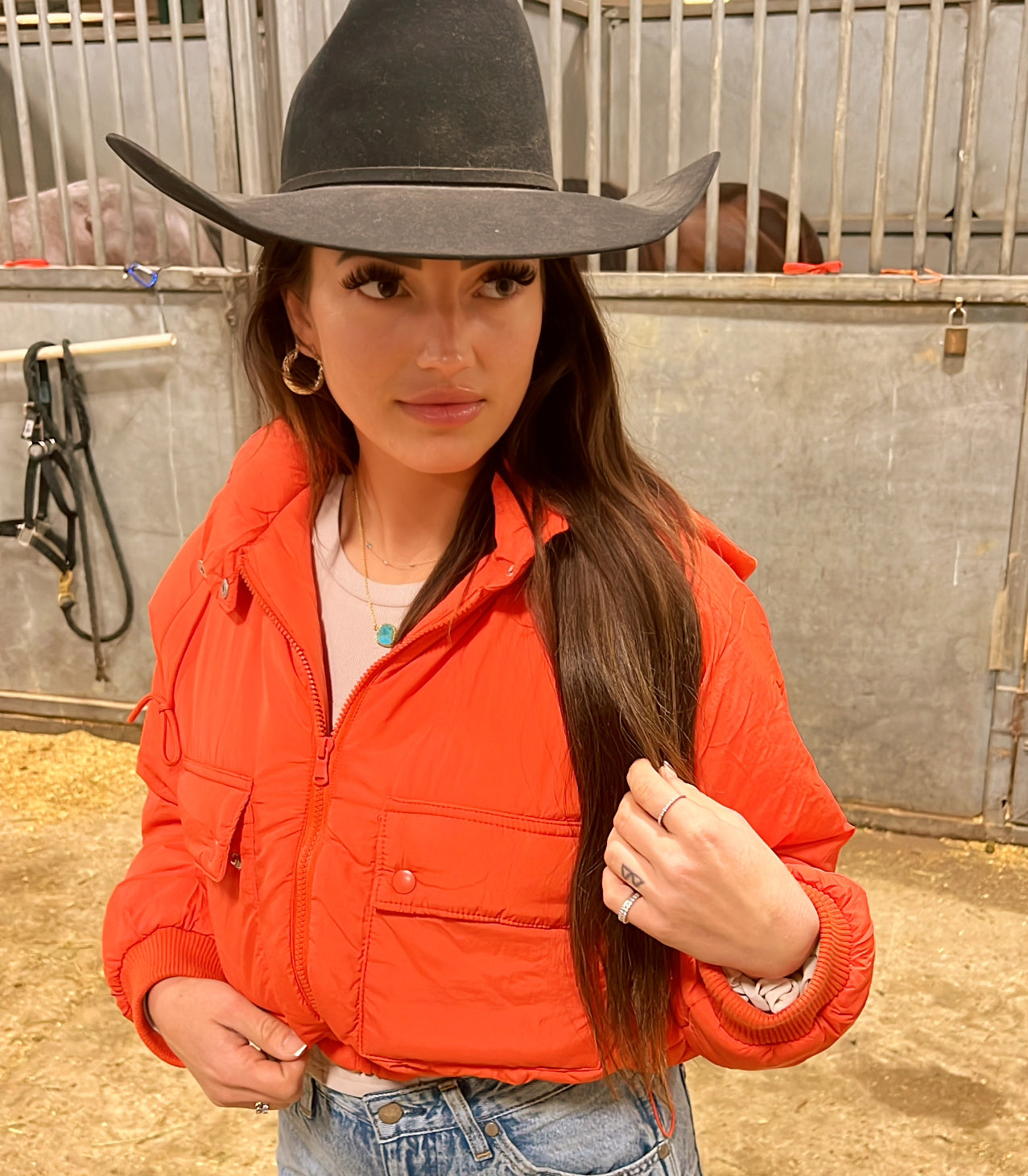 The Engine Puffer is a cropped, zip up jacket designed to keep you warm while looking stylish. It features a flattering adjustable waist and is constructed from lightweight, yet durable red fabric. Keep yourself cozy and look great in this must-have jacket.