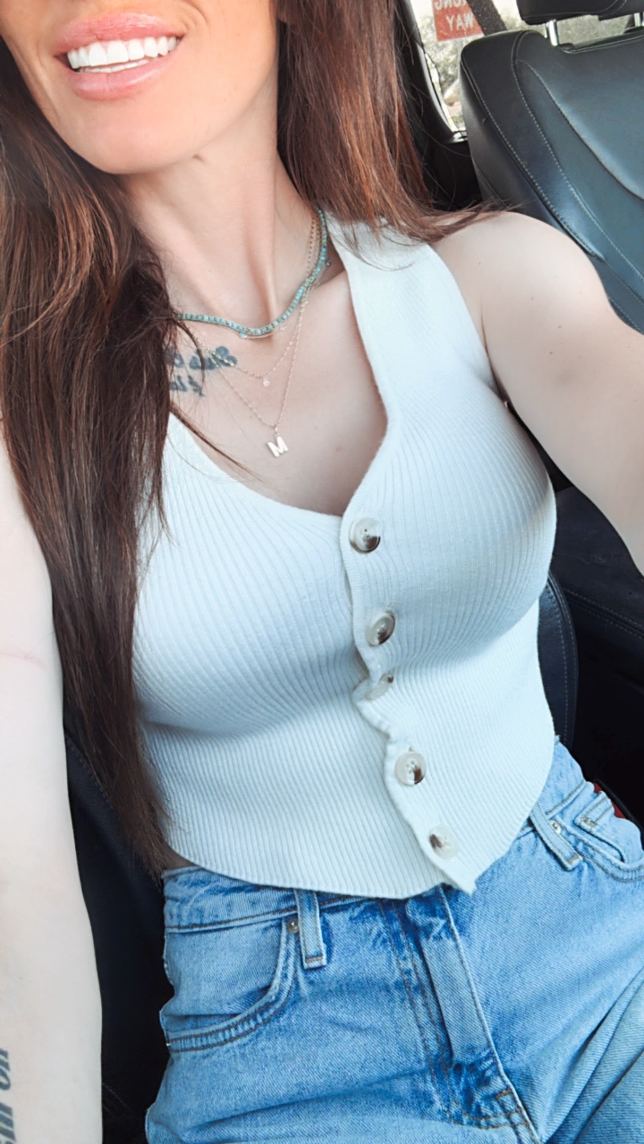 Introducing the Maria Tank - a versatile and stylish addition to any wardrobe. Made with a rib knit fabric and designed with a front button up detail, this cropped tank offers both comfort and sophistication. Perfect for any occasion, this tank will become your go-to piece for effortless style.