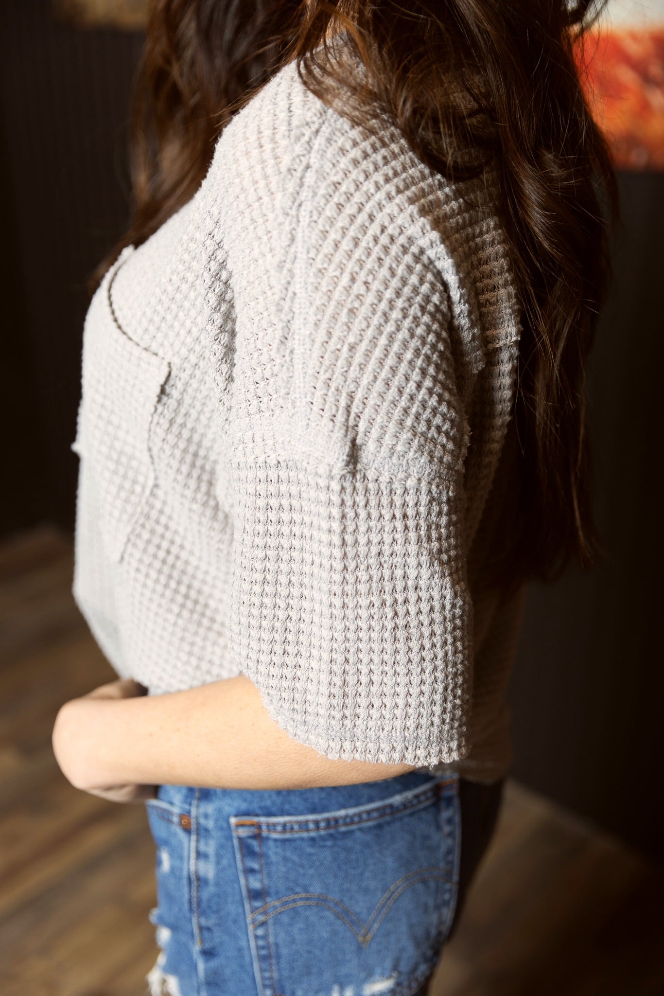 "The Mika top is the perfect blend of casual and comfortable, crafted from a soft waffle knit fabric. Its short sleeves make it a versatile piece for any season. Stay stylish and cozy with The Mika."
