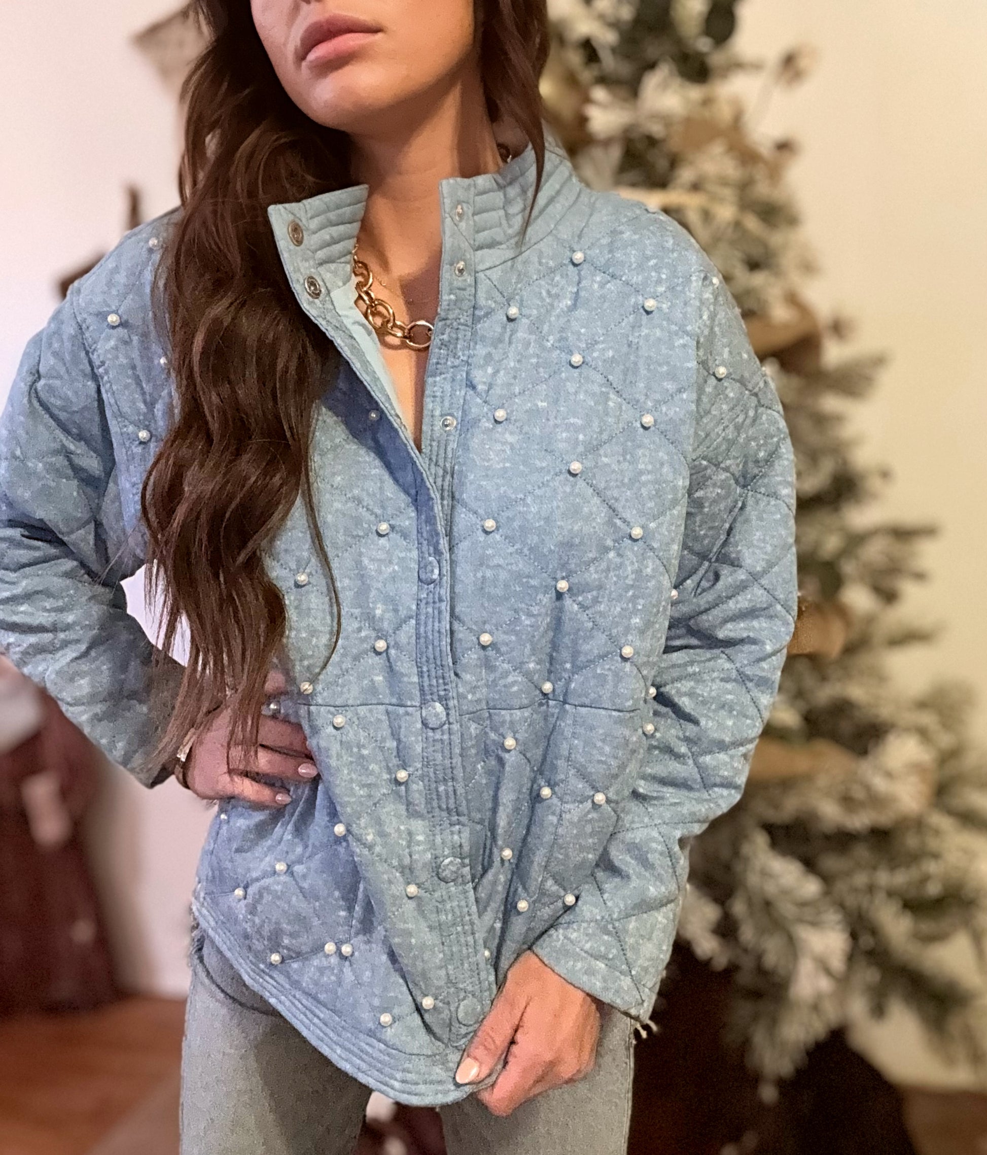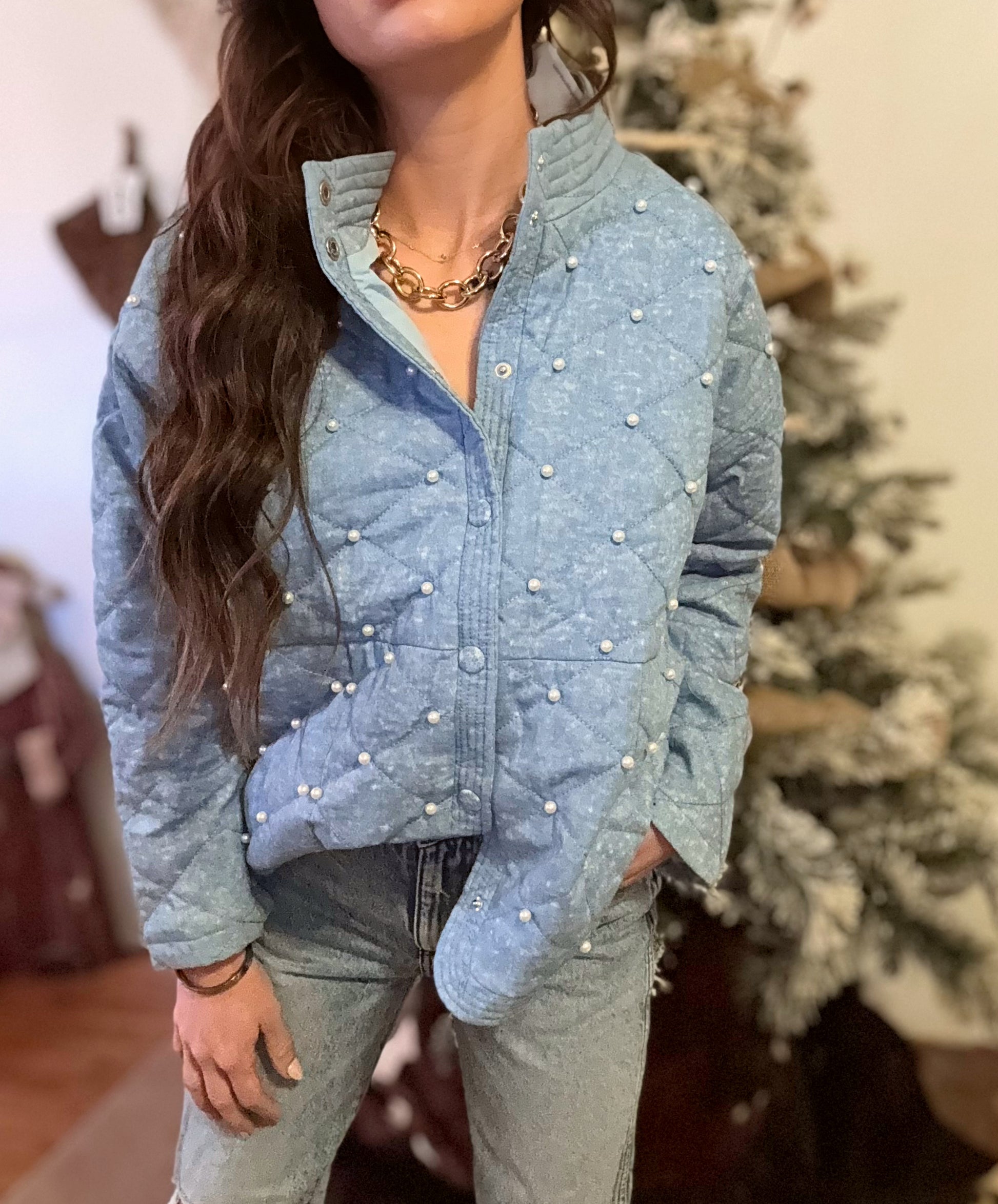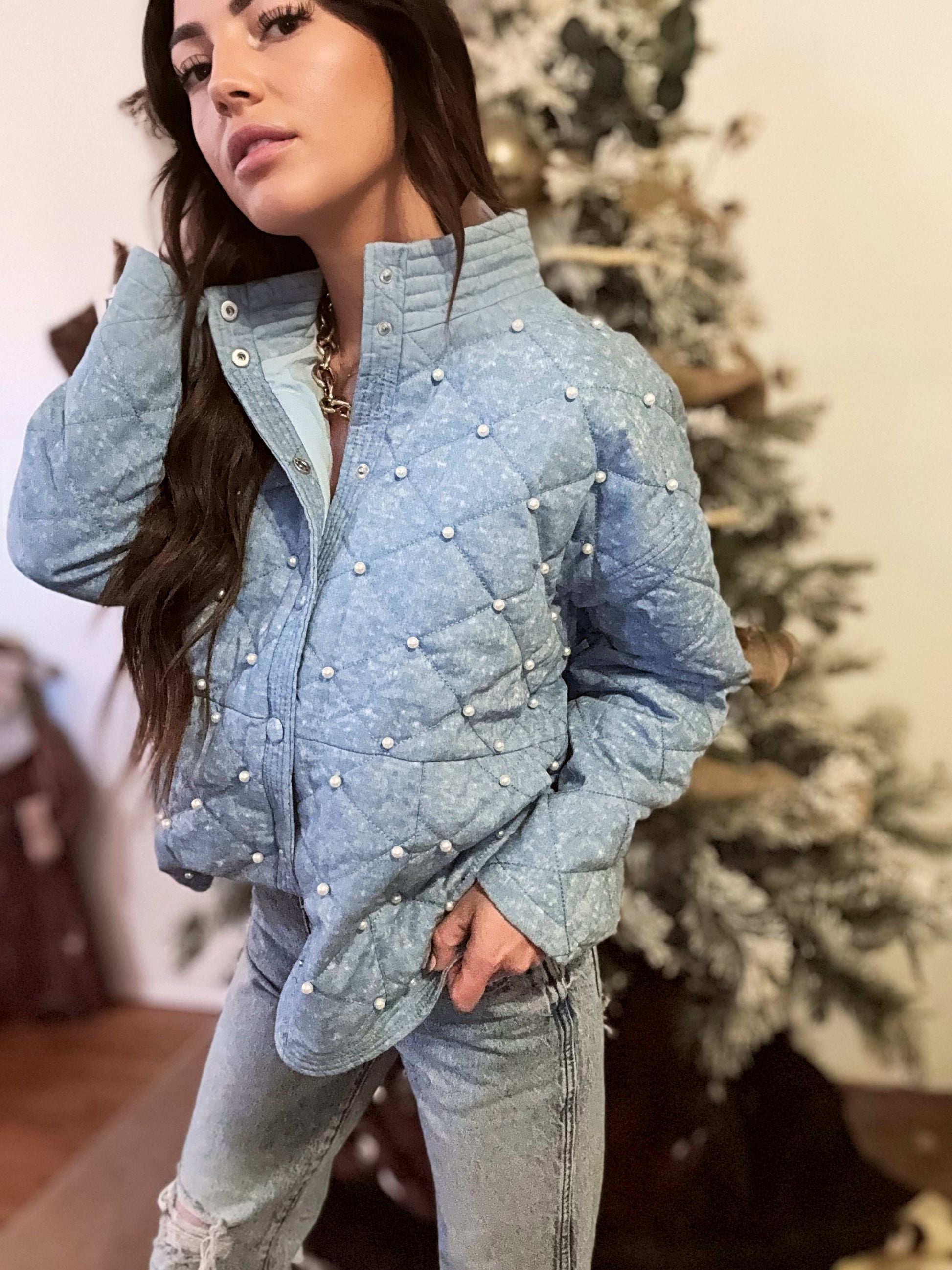 The Urban Cowgirl boasts a quilted design and pearl beaded accents, delivering an air of sophistication and elegance. Stay warm and stylish in this uniquely crafted jacket, making a statement wherever you go. Expertly designed for the urban cowgirl in mind.
